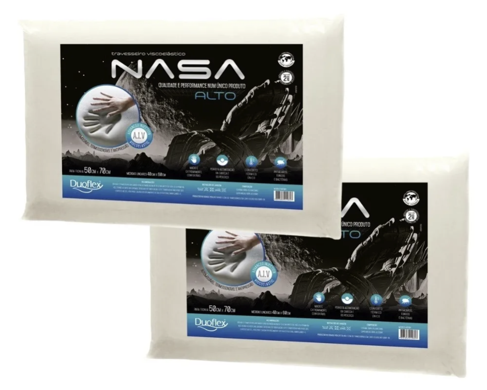 Duoflex Nasa X Alto travesseiro Tradicional 60cm 40cm kit 2 unidades cor branco. Por menos de R$200,00. Aqui!